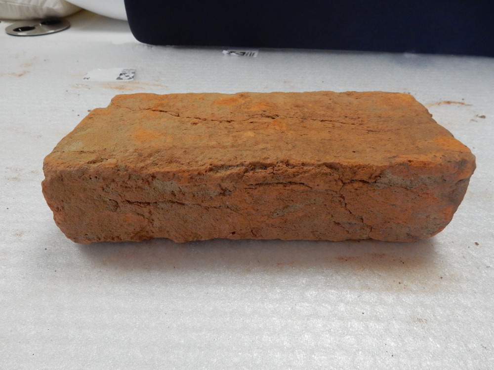 - Kloostermop (baksteen) van het kasteel van Oss. Gevonden in laag B, zuidmuur